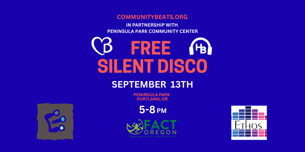 Community Beats, a nonprofit dedicated to strengthening community and empowering youth through music and movement, is hosting a FREE Silent Disco at the beautiful Peninsula Park with all the roses in Portland Oregon